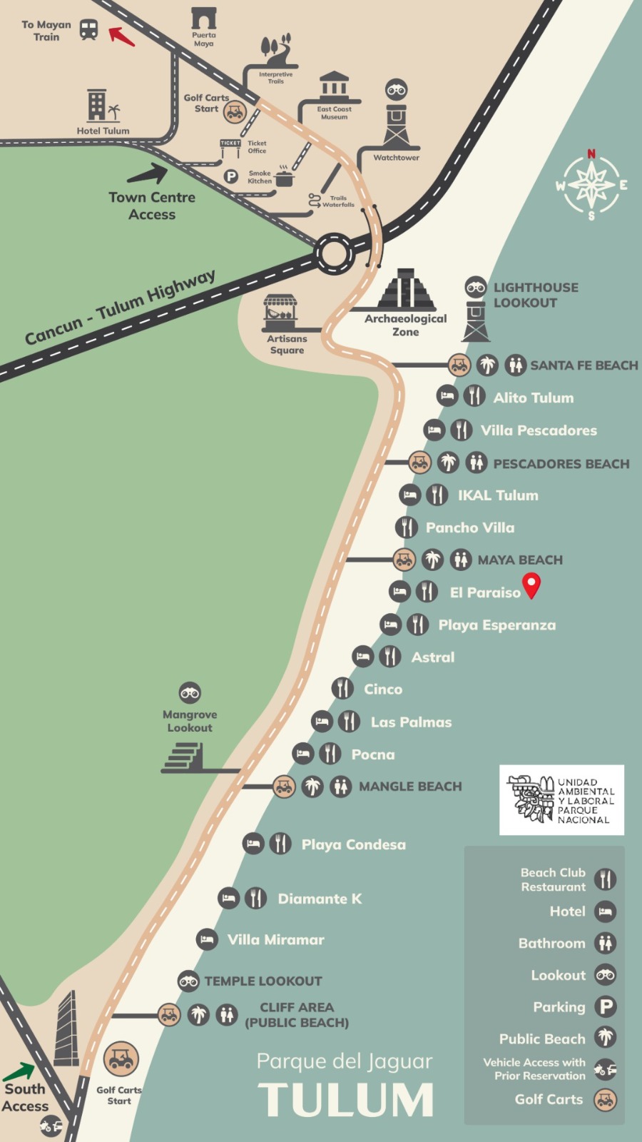 Jaguar National Park is protected by the Federal Government, ensuring a safe environment for all visitors. Here, you can enjoy Tulum's natural paradise with complete peace of mind. Safety and accessibility are a top priority, so you can explore and relax without worry. This is a place where the beauty of nature and Tulum's history come together to offer you a unique adventure!